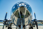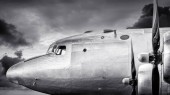 Pionowa skala szarości wojskowego ładunku lotniczego AC-130 i pancernika