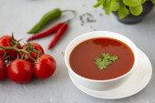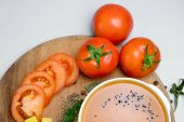Zdjęcie "widok z góry zupy pomidorowej w misce na stole" może być wykorzystywane do celów osobistych i komercyjnych zgodnie z warunkami zakupionej licencji Royalty-free. Obraz jest dostępny do pobrania w jakości wysokiej rozdzielczości do 5760x3840.