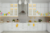 Zdjęcie "Stylowa kuchnia z nowoczesnymi meblami i różnymi urządzeniami. Projekt wnętrza" może być wykorzystywane do celów osobistych i komercyjnych zgodnie z warunkami zakupionej licencji Royalty-free. Obraz jest dostępny do pobrania w jakości wysokiej rozdzielczości do 5760x3840.