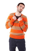 Zdjęcie "młody człowiek w szarej koszuli. łapka na biały." może być wykorzystywane do celów osobistych i komercyjnych zgodnie z warunkami zakupionej licencji Royalty-free. Obraz jest dostępny do pobrania w jakości wysokiej rozdzielczości do 5760x3840.