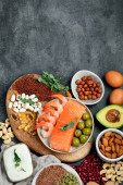 Żywność dla zdrowej koncepcji serca i stetoskop na czarnym tle