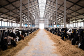 Zdjęcie "Stado krów stojących za zagrodą dla zwierząt i jedzących siano w dużym gospodarstwie" może być wykorzystywane do celów osobistych i komercyjnych zgodnie z warunkami zakupionej licencji Royalty-free. Obraz jest dostępny do pobrania w jakości wysokiej rozdzielczości do 5760x3840.