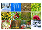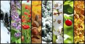 cztery pory roku kolaż: zima, wiosna, lato, jesień