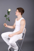 atrakcyjny mężczyzna przystojny z jedną czerwoną różą.