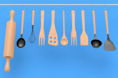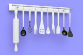 Zdjęcie "Zestaw naczyń kuchennych do przygotowania ciasta zawieszonego na półce na białym tle. 3d renderowania procesu gotowania krok po kroku i akcesoria do gotowania, mieszania i mieszania" może być wykorzystywane do celów osobistych i komercyjnych zgodnie z warunkami zakupionej licencji Royalty-free. Obraz jest dostępny do pobrania w jakości wysokiej rozdzielczości do 5760x3840.