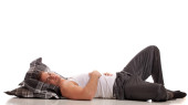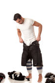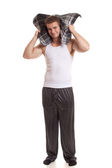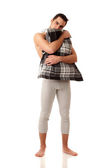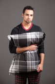 atrakcyjny mężczyzna w piżamie. łapka na szary.