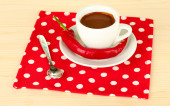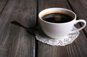 Filiżankę kawy i smaczne ciasteczko na kolor drewniane tła