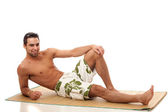 atrakcyjny młody człowiek w szorty. łapka na biały.