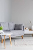 Stylowy salon z wygodnymi meblami i pięknymi zasłonami okiennymi