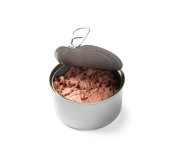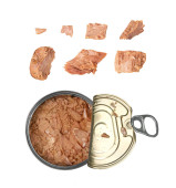 Otwarta puszka z tuńczykiem odizolowana na białym tle