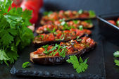 Toasty ze smacznymi warzywami z grilla, widok z góry