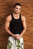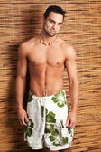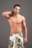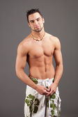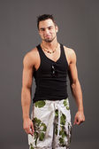 atrakcyjny młody człowiek w szorty. łapka na szary.