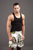 atrakcyjny młody człowiek w szorty. łapka na szary.