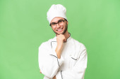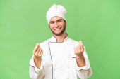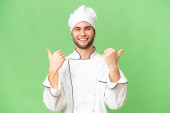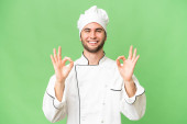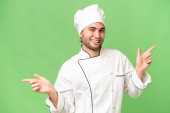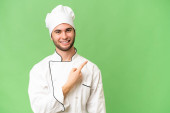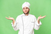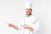 młody przystojny szef kuchni człowiek na odizolowane tło z niespodzianka twarzy ekspresja