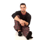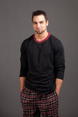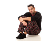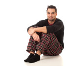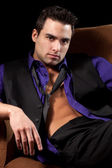 dobrze ubrany mężczyzna w fotelu. łapka na czarno.