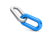 3D renderowanie niebieskiego symbolu ogniwa łańcucha izolowane na białym tle