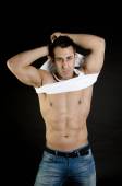 gracz rugby mężczyzn przed ścian betonowych.