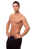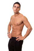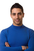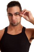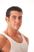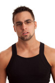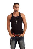 młody człowiek w czarny podkoszulek. łapka na biały.