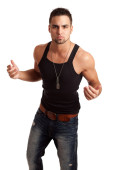 Zdjęcie "młody człowiek w czarny podkoszulek. łapka na biały." może być wykorzystywane do celów osobistych i komercyjnych zgodnie z warunkami zakupionej licencji Royalty-free. Obraz jest dostępny do pobrania w jakości wysokiej rozdzielczości do 5760x3840.