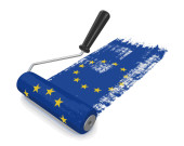 młotek z flagą Unii Europejskiej uderzanie zardzewiały gwóźdź, mi