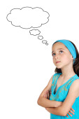 Ładny dziewczyna marząca na tle bzu, tekst chmura z miejsca dla tekstu