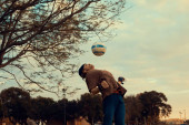 Zdjęcie "Młody biały dzieciak stojący na polu z piłką nożną." może być wykorzystywane do celów osobistych i komercyjnych zgodnie z warunkami zakupionej licencji Royalty-free. Obraz jest dostępny do pobrania w jakości wysokiej rozdzielczości do 5760x3840.