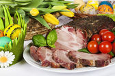 Tradycyjne potrawy wielkanocne na wiejski Stół drewniany
