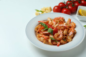 Zdjęcie "pyszny makaron w talerzu na białym drewnianym stole. zbliżenie" może być wykorzystywane do celów osobistych i komercyjnych zgodnie z warunkami zakupionej licencji Royalty-free. Obraz jest dostępny do pobrania w jakości wysokiej rozdzielczości do 5760x3840.