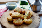 Świeże klopsiki morszczuka w sosie z białego wina. Tradycyjny hiszpański tapa przepis.