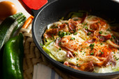 Błękitek, błękitek z małżami i zielonym sosem. Tradycyjne hiszpańskie tapa.