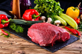 Zdjęcie "Surowy befsztyk na papierze z warzyw i zieleni na drewniane tła" może być wykorzystywane do celów osobistych i komercyjnych zgodnie z warunkami zakupionej licencji Royalty-free. Obraz jest dostępny do pobrania w jakości wysokiej rozdzielczości do 5760x3840.