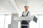 Zdjęcie "budowniczy na placu budowy z skrzynką narzędziową." może być wykorzystywane do celów osobistych i komercyjnych zgodnie z warunkami zakupionej licencji Royalty-free. Obraz jest dostępny do pobrania w jakości wysokiej rozdzielczości do 5760x3840.