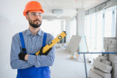 Zdjęcie "Koncepcja budynku, sprzętu ochronnego i ludzi - skrzynka narzędziowa budowniczego na placu budowy." może być wykorzystywane do celów osobistych i komercyjnych zgodnie z warunkami zakupionej licencji Royalty-free. Obraz jest dostępny do pobrania w jakości wysokiej rozdzielczości do 5760x3840.