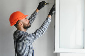 Pracownicy instalują ścianę z płyt gipsowo-kartonowych
