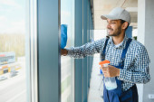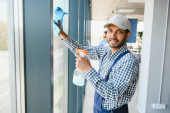 Zdjęcie "Męskie okno do czyszczenia dozorca w biurze." może być wykorzystywane do celów osobistych i komercyjnych zgodnie z warunkami zakupionej licencji Royalty-free. Obraz jest dostępny do pobrania w jakości wysokiej rozdzielczości do 5760x3840.