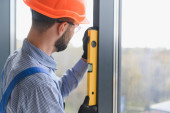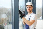 Zdjęcie "Robotnik w kombinezonach instalujący lub regulujący okna z tworzywa sztucznego w salonie w domu." może być wykorzystywane do celów osobistych i komercyjnych zgodnie z warunkami zakupionej licencji Royalty-free. Obraz jest dostępny do pobrania w jakości wysokiej rozdzielczości do 5760x3840.