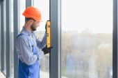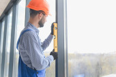 Zdjęcie "Brygadzista instaluje w pokoju ramę okienną.." może być wykorzystywane do celów osobistych i komercyjnych zgodnie z warunkami zakupionej licencji Royalty-free. Obraz jest dostępny do pobrania w jakości wysokiej rozdzielczości do 5760x3840.