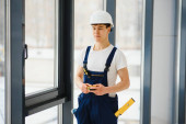 Zdjęcie "Workers with tube of sealant and suction lifters installing plastic windows indoors" może być wykorzystywane do celów osobistych i komercyjnych zgodnie z warunkami zakupionej licencji Royalty-free. Obraz jest dostępny do pobrania w jakości wysokiej rozdzielczości do 5760x3840.