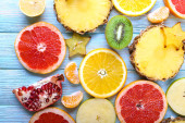 Zdjęcie "Pokrojone owoce na stole, szczelnie-do góry" może być wykorzystywane do celów osobistych i komercyjnych zgodnie z warunkami zakupionej licencji Royalty-free. Obraz jest dostępny do pobrania w jakości wysokiej rozdzielczości do 5760x3840.