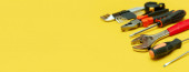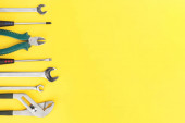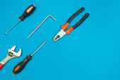 Zestaw narzędzi na tle koloru, widok z góry