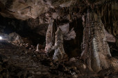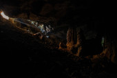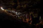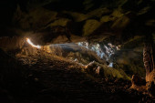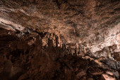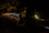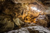 Promienie słońca wewnątrz jaskini. Od wejścia do jaskini promienie słońca oświetlają wnętrze.