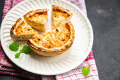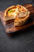 quiche pikantne ciasto farsz posiłek jedzenie przekąska na stole kopia przestrzeń jedzenie tło rustykalny widok z góry