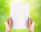 trzymając biały czysty papier A4