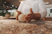 Zdjęcie "Bezimienna kucharka w białym fartuchu wylewa mąkę z gałki do metalowej miski podczas przygotowywania ciasta w kuchni" może być wykorzystywane do celów osobistych i komercyjnych zgodnie z warunkami zakupionej licencji Royalty-free. Obraz jest dostępny do pobrania w jakości wysokiej rozdzielczości do 5760x3840.