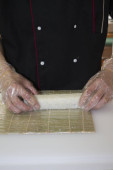Bezimienna kucharka przygotowująca włoski makaron z ciasta z maszyną podczas gotowania tradycyjnego dania w kuchni