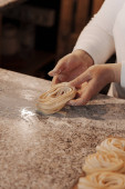 Zdjęcie "Wysoki kąt apetyczny ręcznie robione naturalne tagliatelle makarony rolki umieszczone na drewnianej desce do krojenia w kuchni" może być wykorzystywane do celów osobistych i komercyjnych zgodnie z warunkami zakupionej licencji Royalty-free. Obraz jest dostępny do pobrania w jakości wysokiej rozdzielczości do 5760x3840.