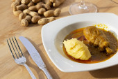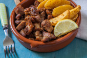 Pieczona Koza "Cabrito Assado" to typowe portugalskie danie z Wigilii Wielkanocnej, Braga, Portugalia.