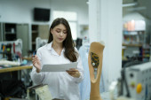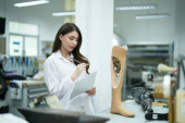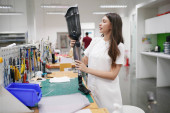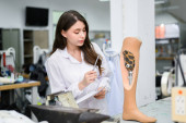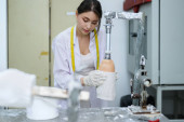 Zdjęcie "Technik ortopedyczny wykonujący protezę nóg dla osób niepełnosprawnych w warsztacie." może być wykorzystywane do celów osobistych i komercyjnych zgodnie z warunkami zakupionej licencji Royalty-free. Obraz jest dostępny do pobrania w jakości wysokiej rozdzielczości do 5760x3840.
