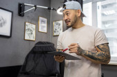Zdjęcie "W salonie tatuażu. Azji młody człowiek stojący w salon tatuażu" może być wykorzystywane do celów osobistych i komercyjnych zgodnie z warunkami zakupionej licencji Royalty-free. Obraz jest dostępny do pobrania w jakości wysokiej rozdzielczości do 5760x3840.