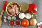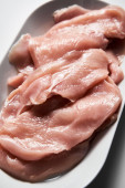 Lista zdrowych tajskich składników sałatki z kurczaka makaron. Kuchnia azjatycka. Makaron ryżowy z kurczakiem i warzywami oraz sosem na bazie soi, ryb i słodkiego sosu chili z czosnkiem i imbirem plus cukier. Wysoka